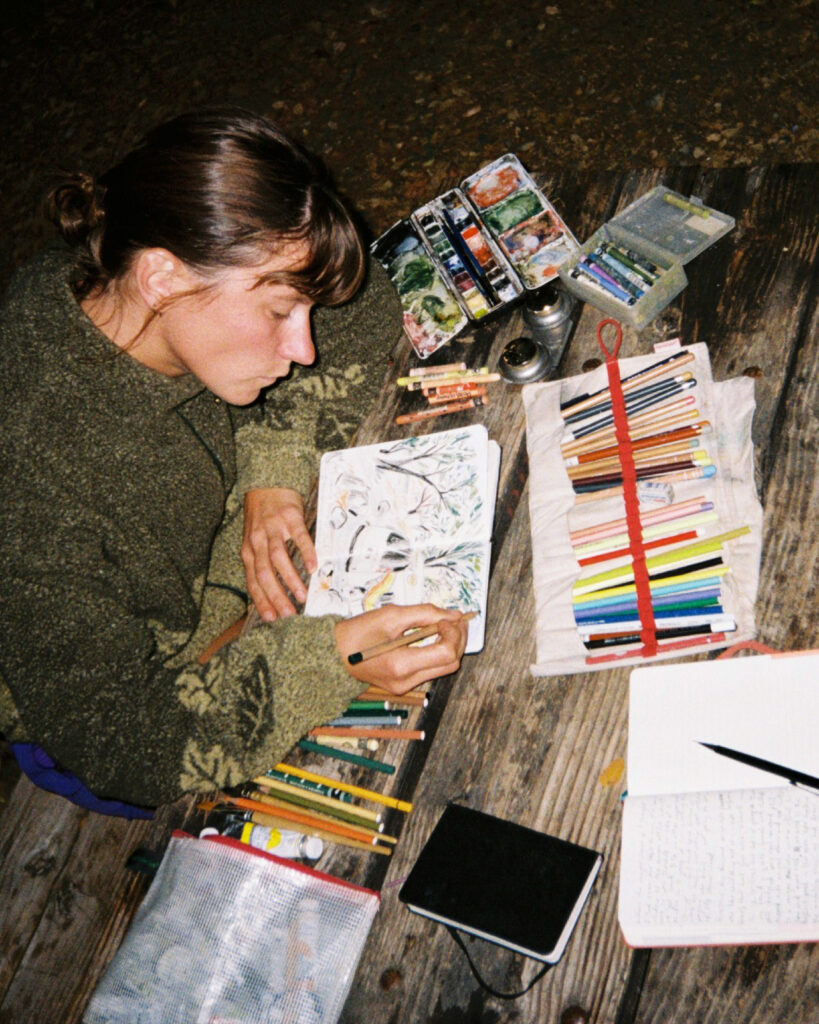 pour devenir artiste indépendante. À travers le dessin, la peinture figurative et la céramique, elle explore le quotidien et l’absurde avec humour et délicatesse, s’inspirant des lieux qu’elle habite et traverse.